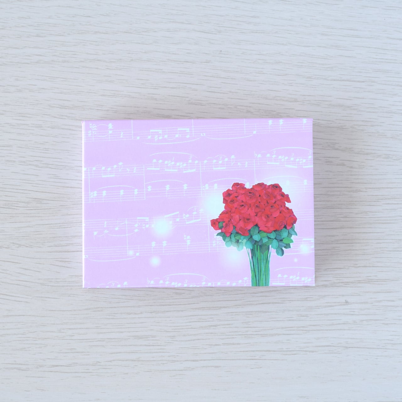 しっかりとしたハードカバーにはバラの花束や音符がデザインされていて音楽好きさんの心をグッと掴みます◎