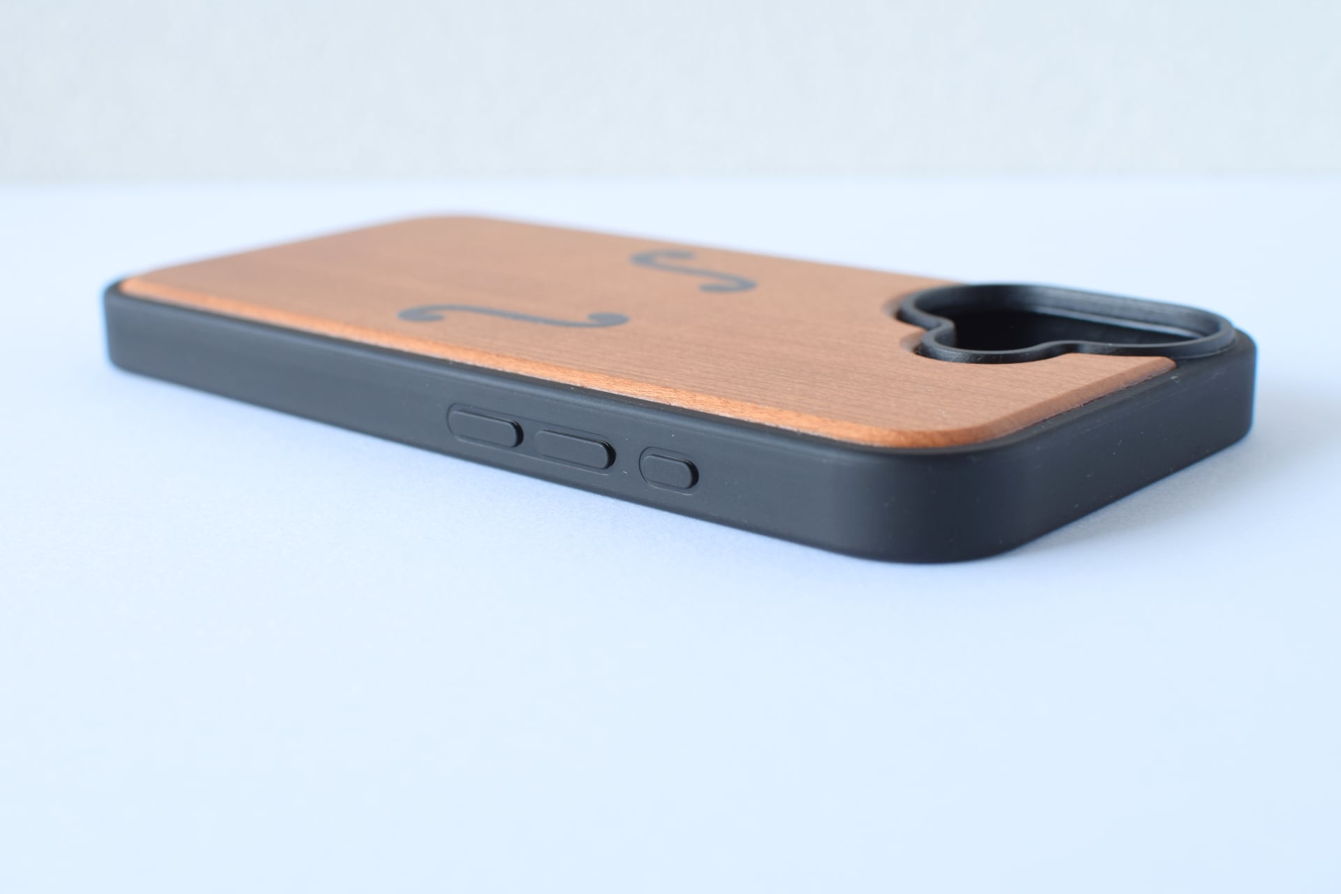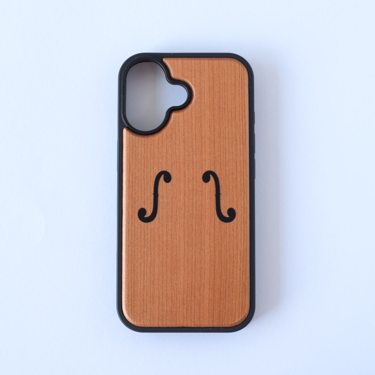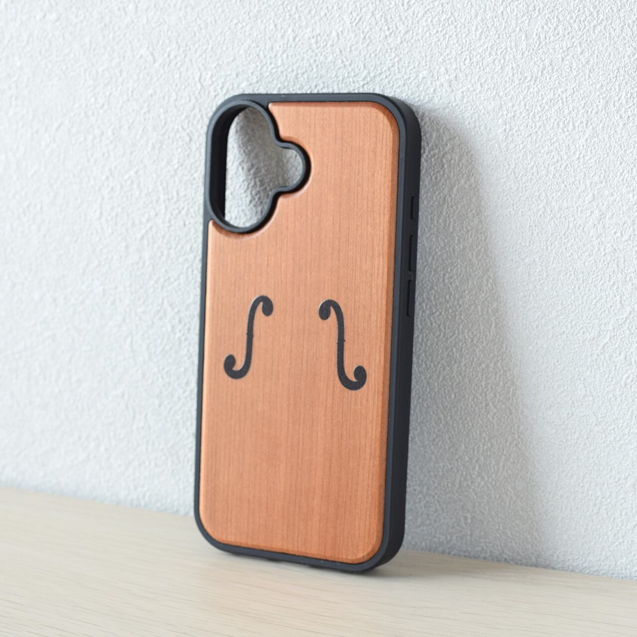 ※画像はiPhone17です。ご希望のiPhoneの機種により、カメラ位置に合わせてf字孔デザインの位置が多少変わる場合がございます。