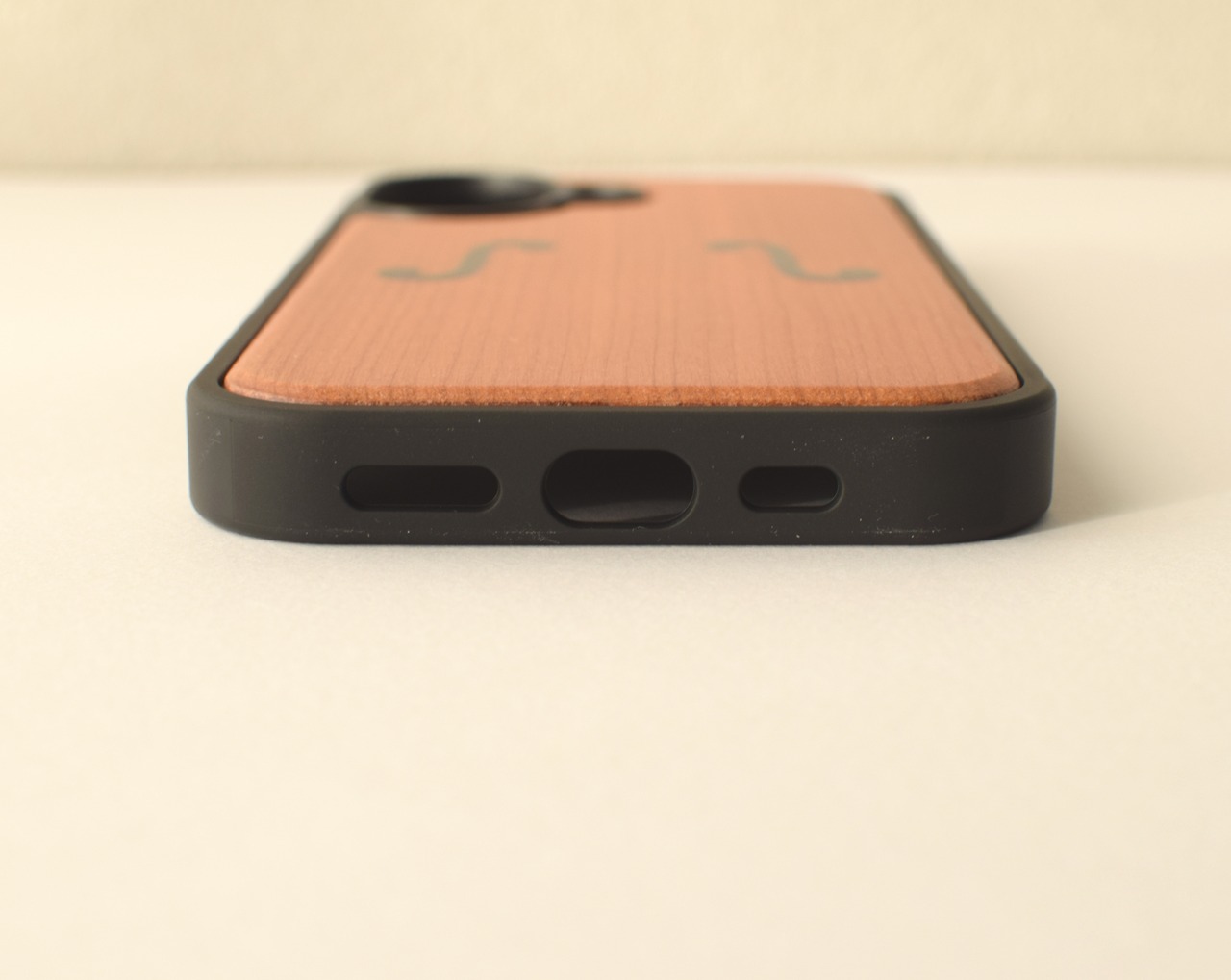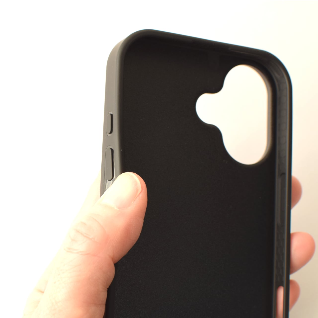 ※画像はiPhone17です。ご希望のiPhoneの機種により、カメラ位置に合わせてf字孔デザインの位置が多少変わる場合がございます。ご了承ください。