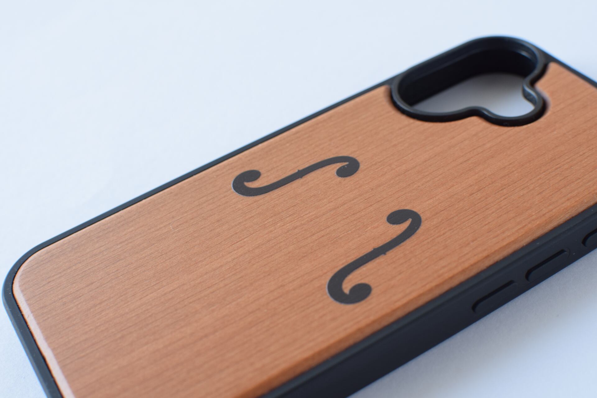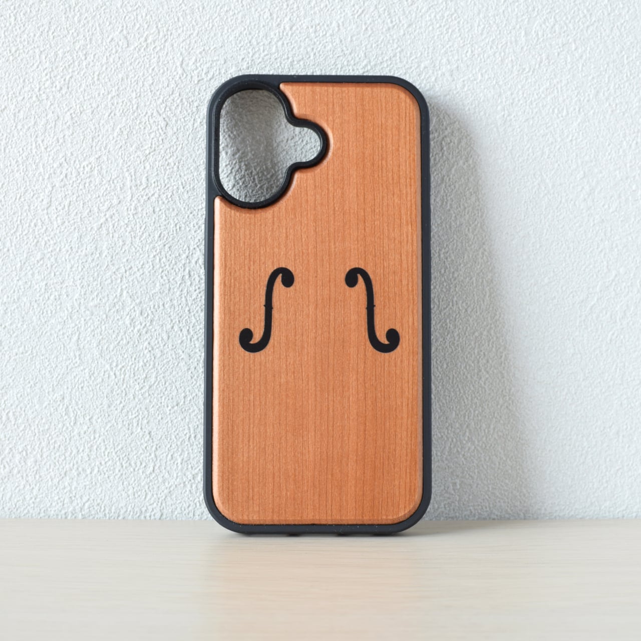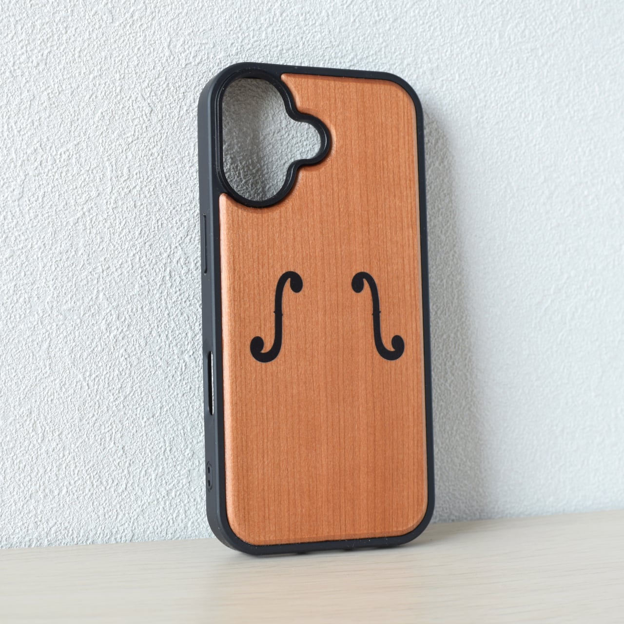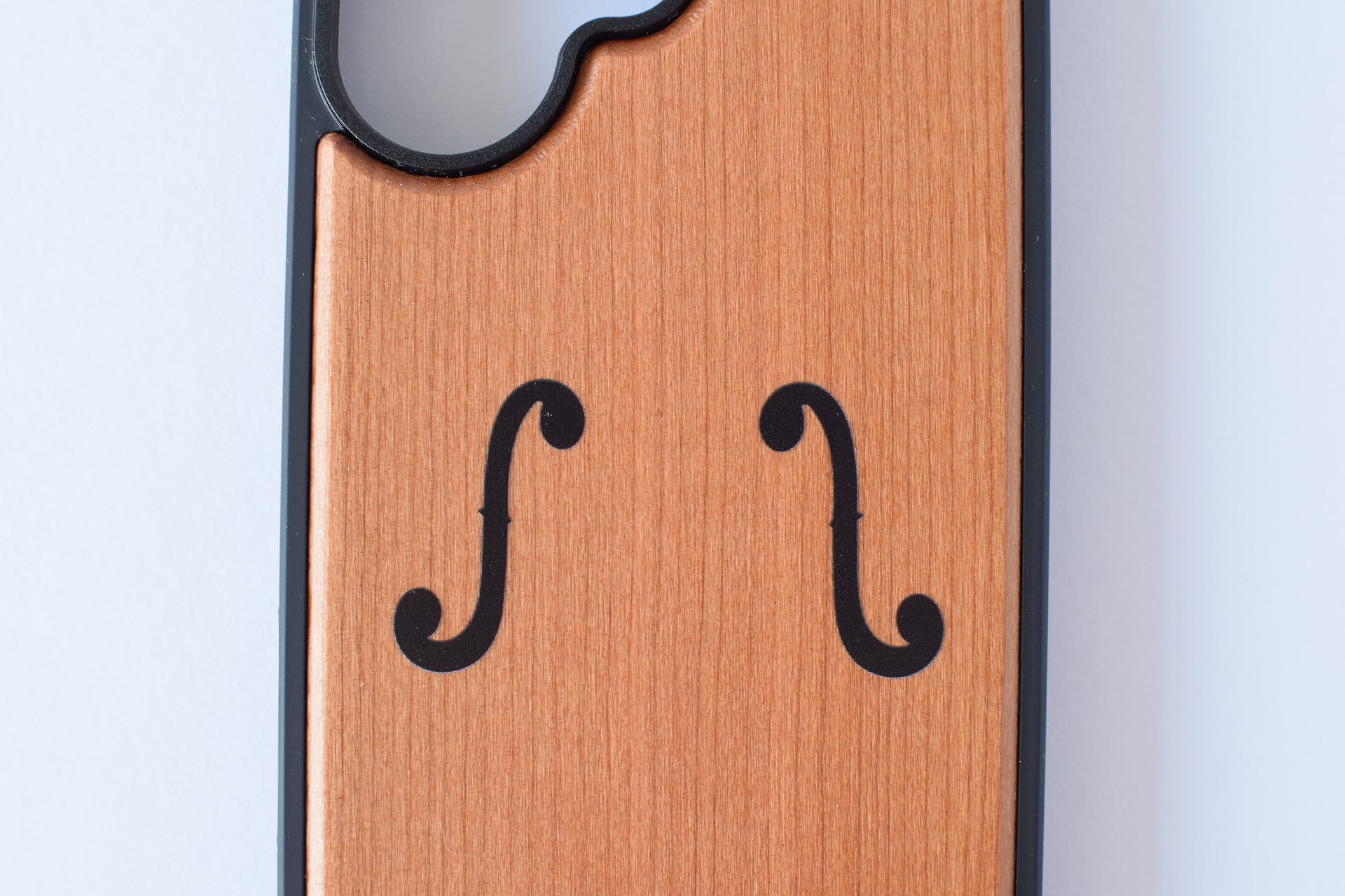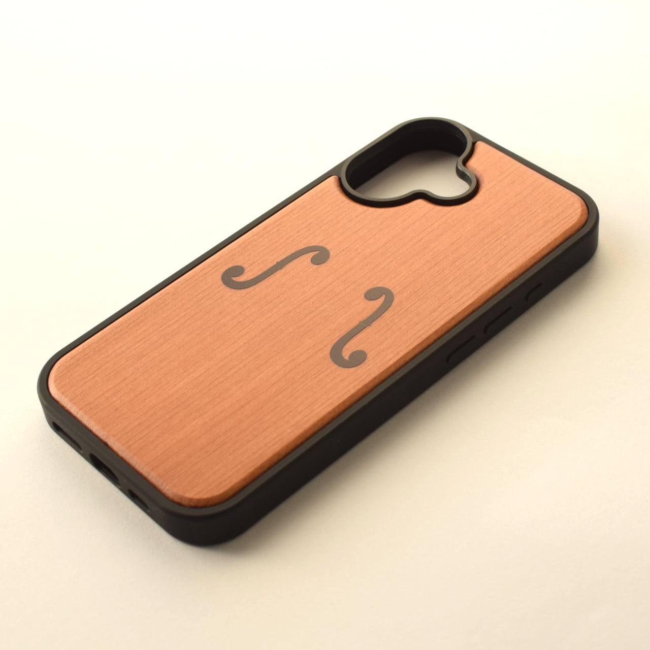 ヴァイオリンのf字孔がデザインされた木製のiPhoneスマホケースが出来上がりました!