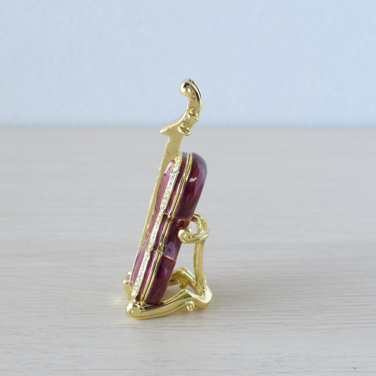 キラキラとしたクリスタルガラスが美しいヴァイオリン型のジュエリーボックスです♪