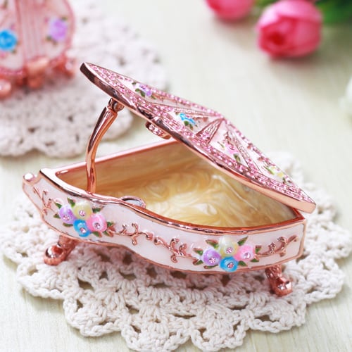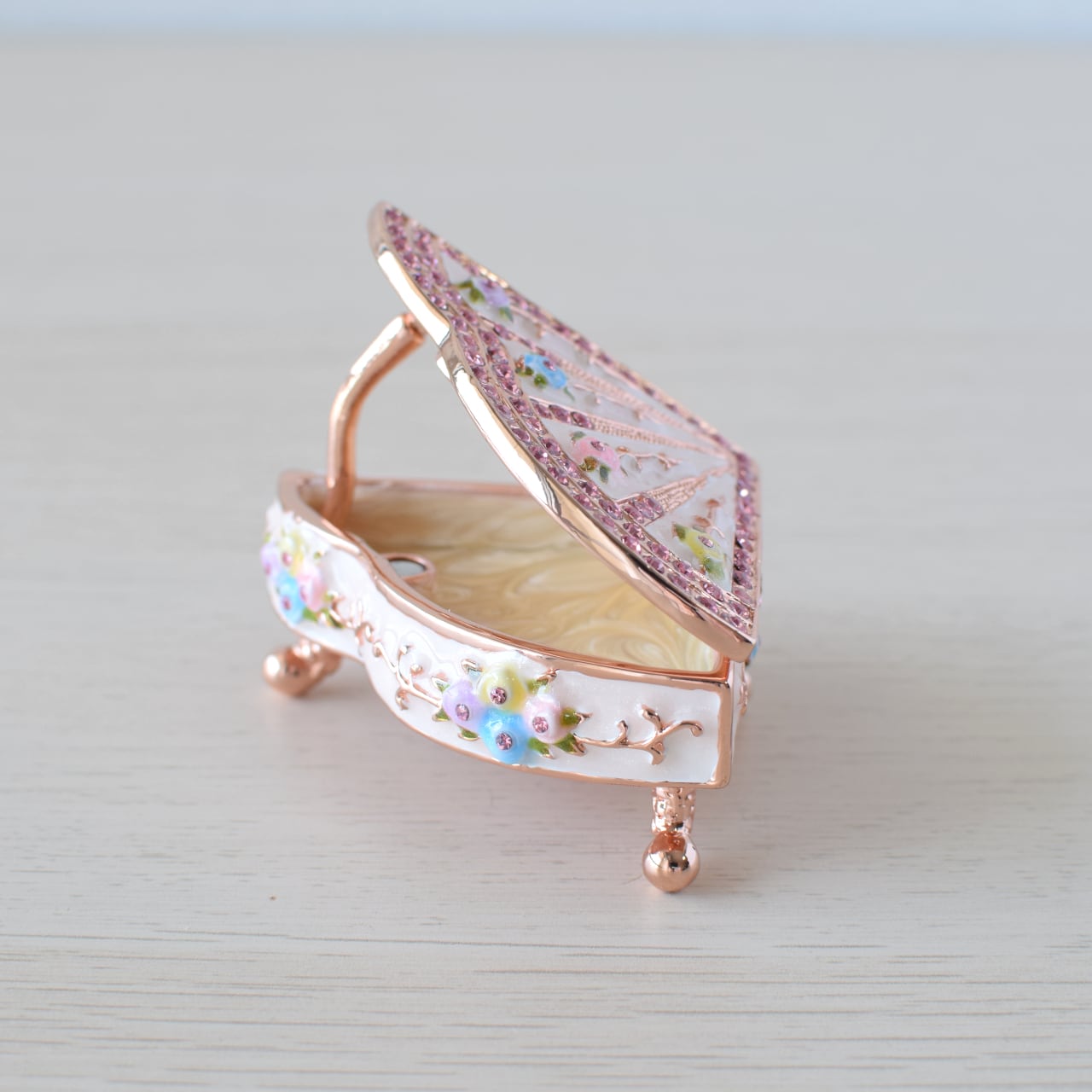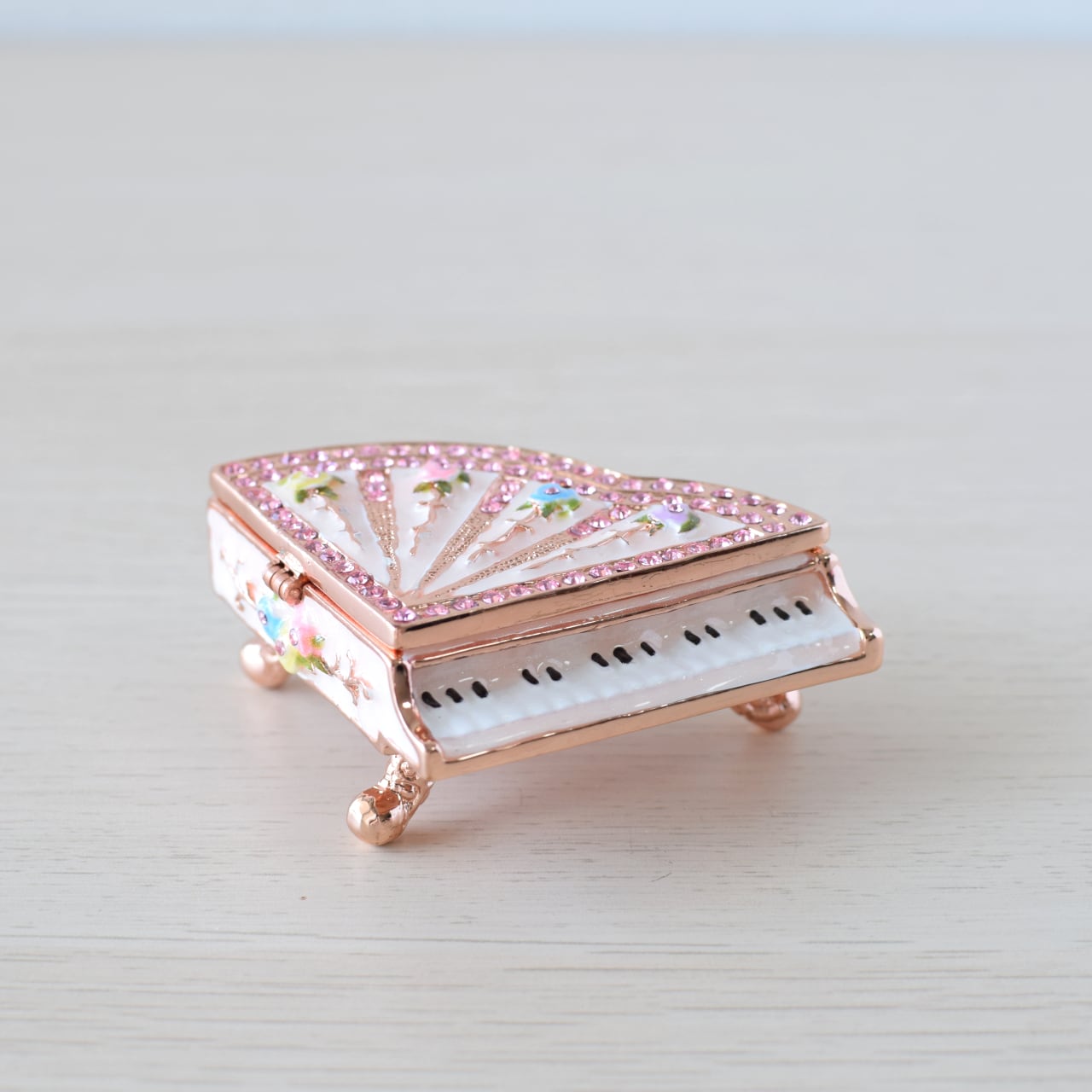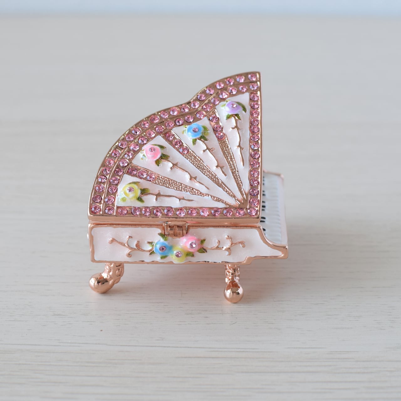 キラキラとしたクリスタルガラスが美しいグランドピアノ型のジュエリーボックスです♪