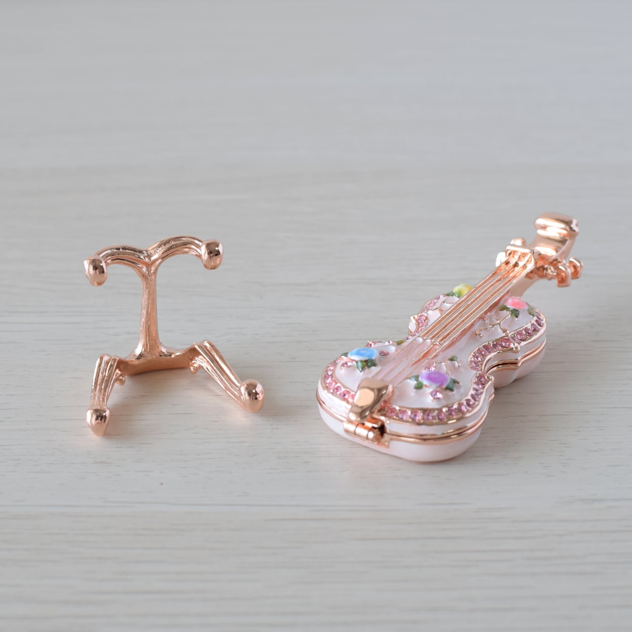ヴァイオリンの上部からパカッと開閉できる仕組みになっており、マグネットでしっかりと留まりますので大切なジュエリーを安全に収納できます◎
