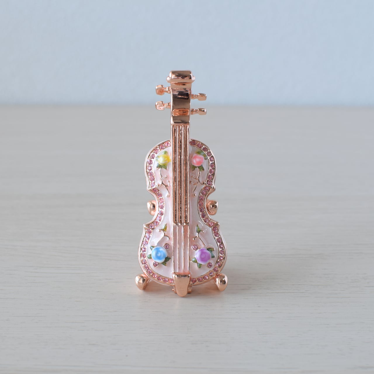 キラキラとしたクリスタルガラスが美しいヴァイオリン型のジュエリーボックスです♪