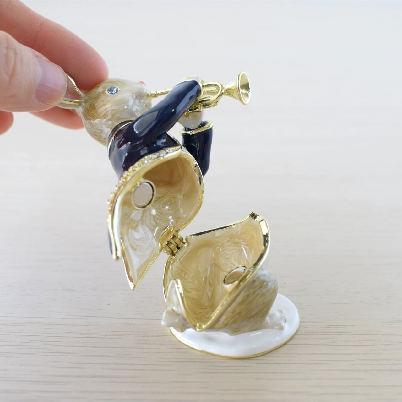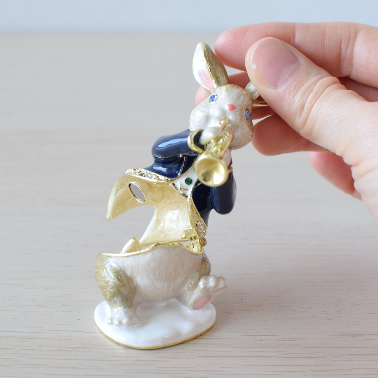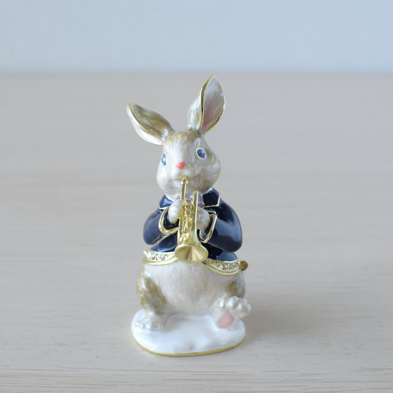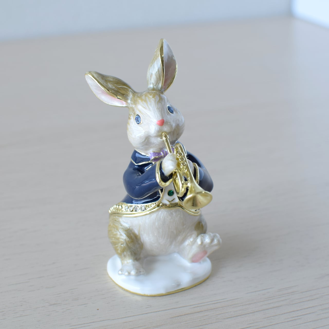 トランペットを演奏している、可愛いうさぎさんのジュエリーボックスです♪