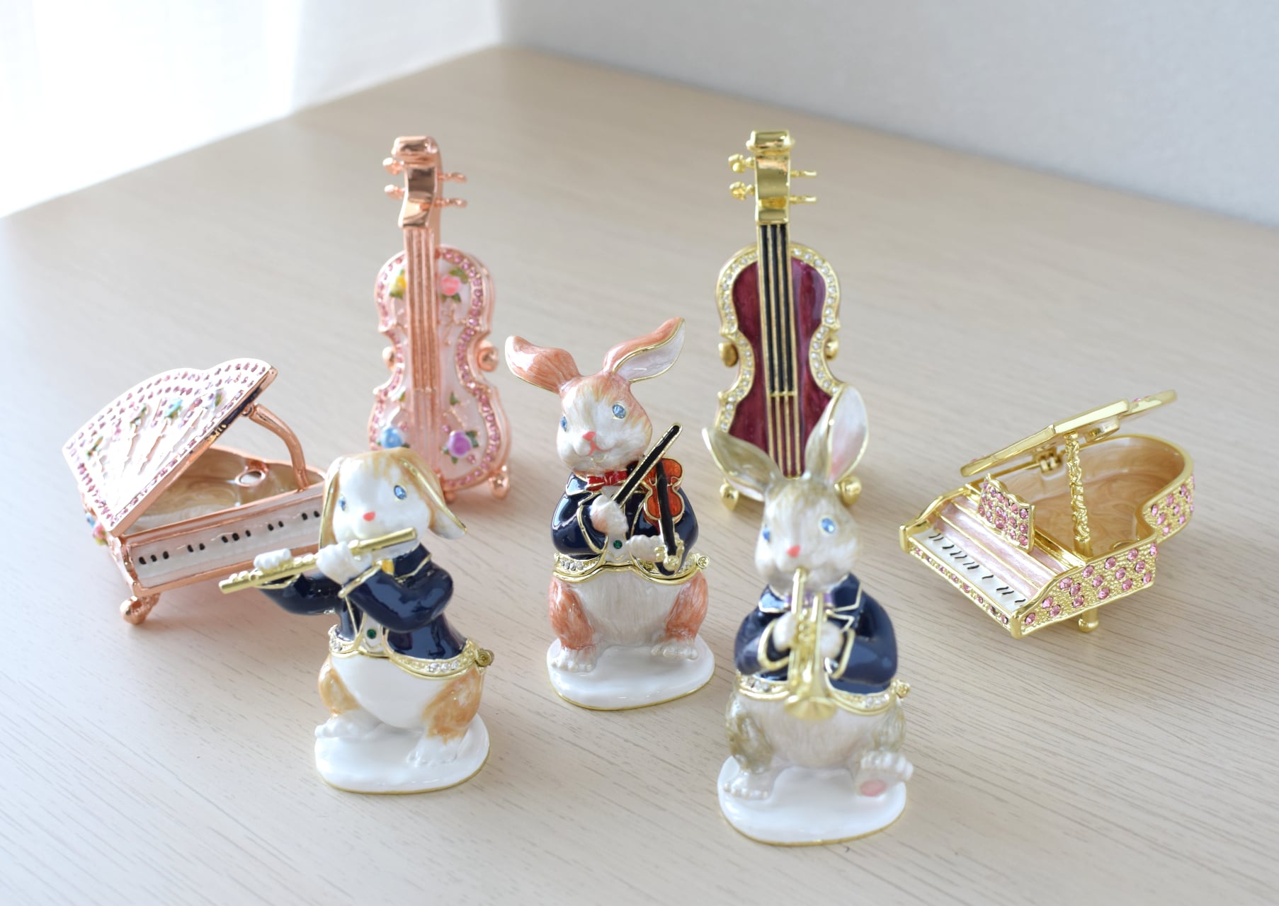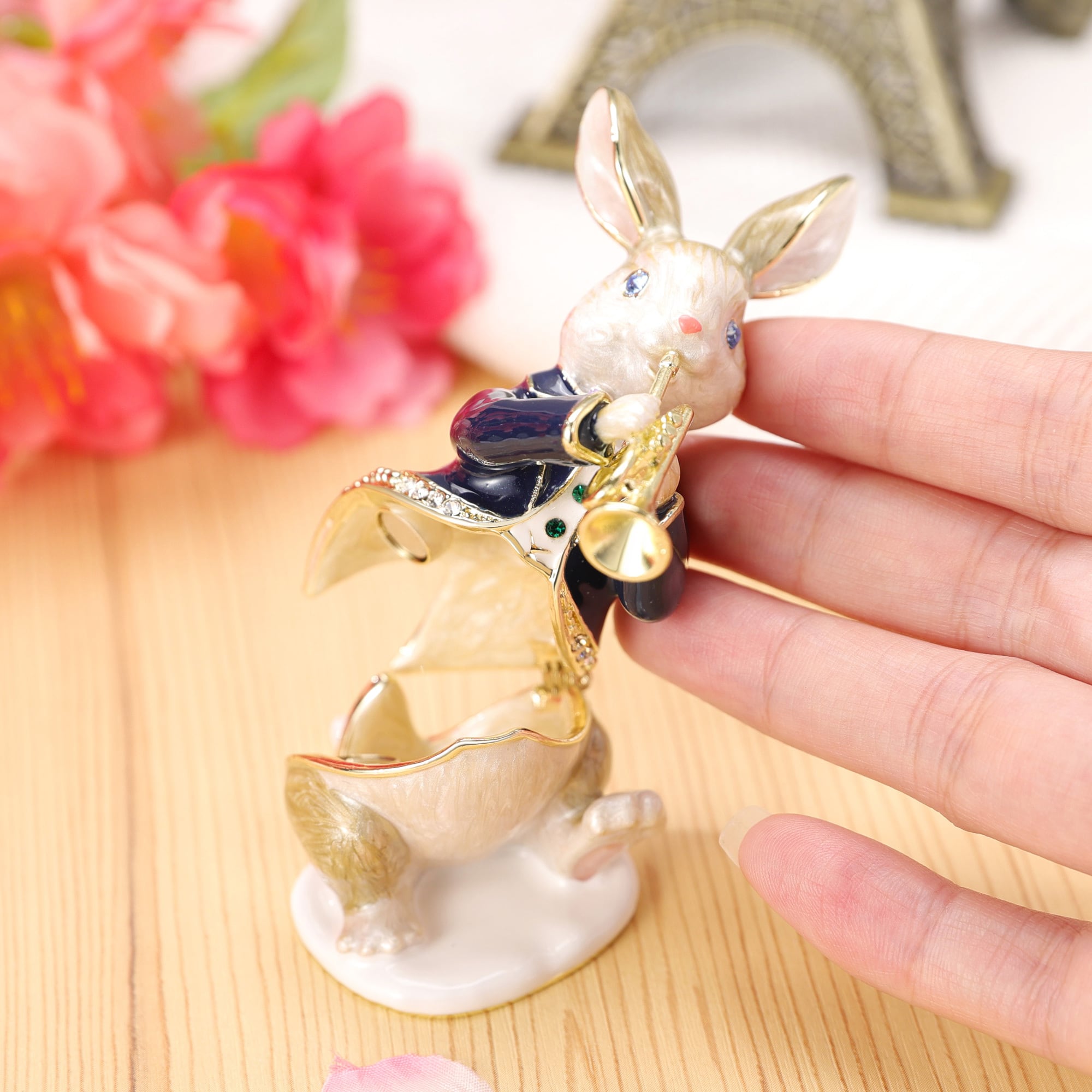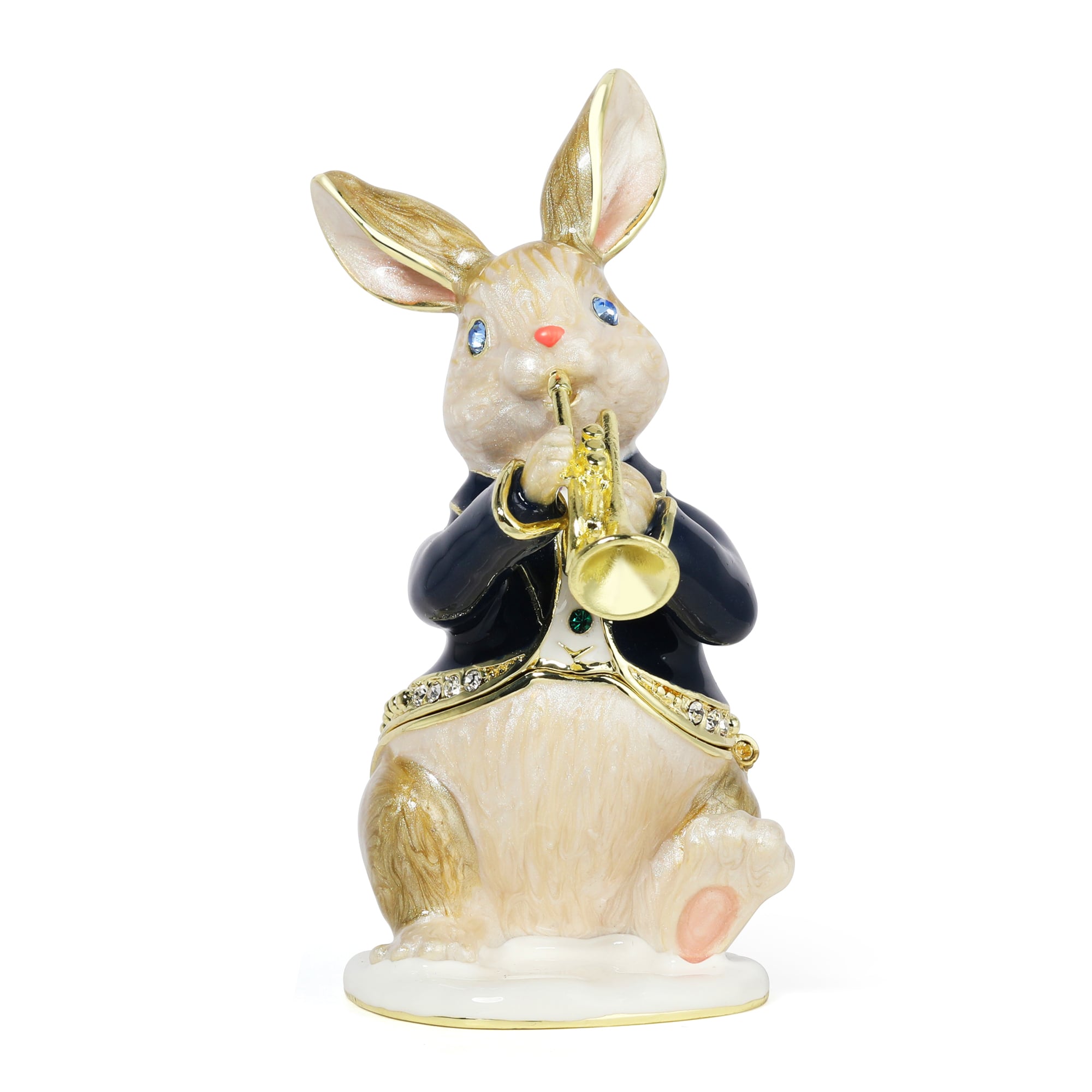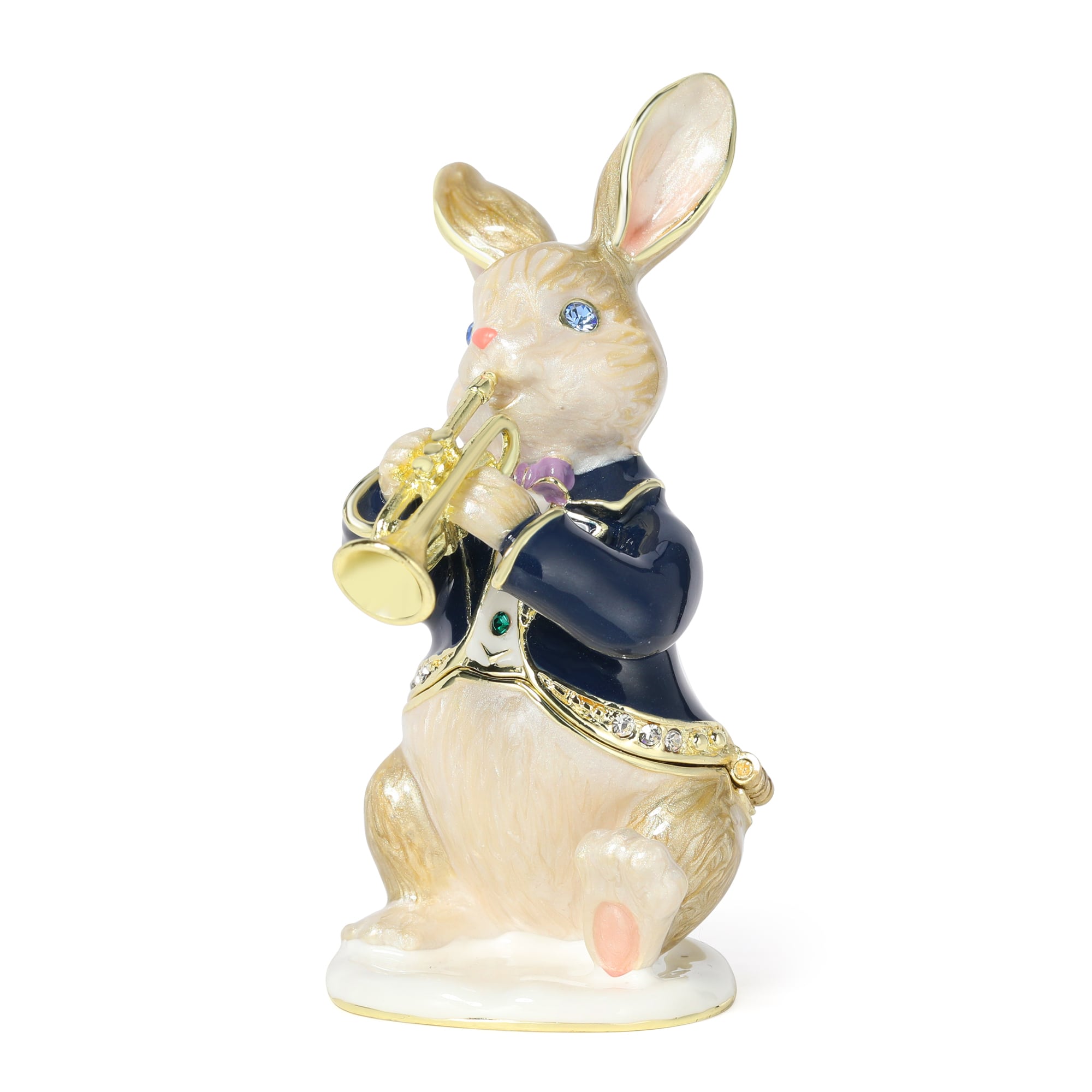 トランペットを演奏している、可愛いうさぎさんのジュエリーボックスです♪