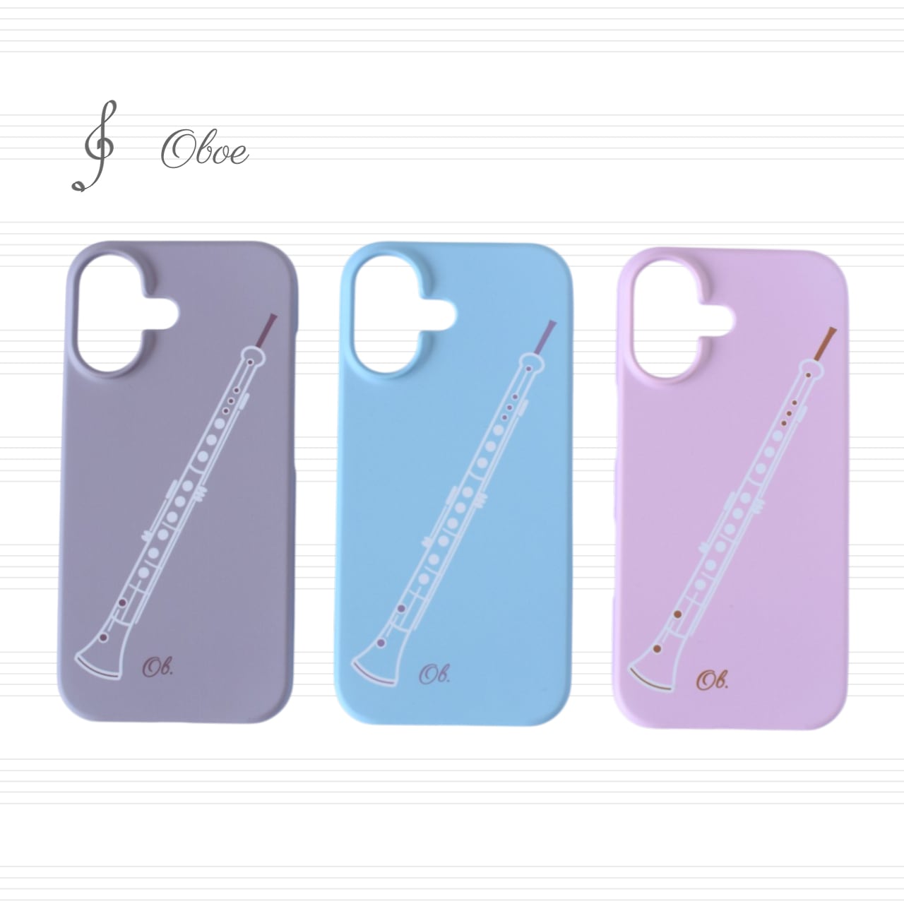 優しい色合いのカラーに可愛らしいオーボエデザインのスマホケース。