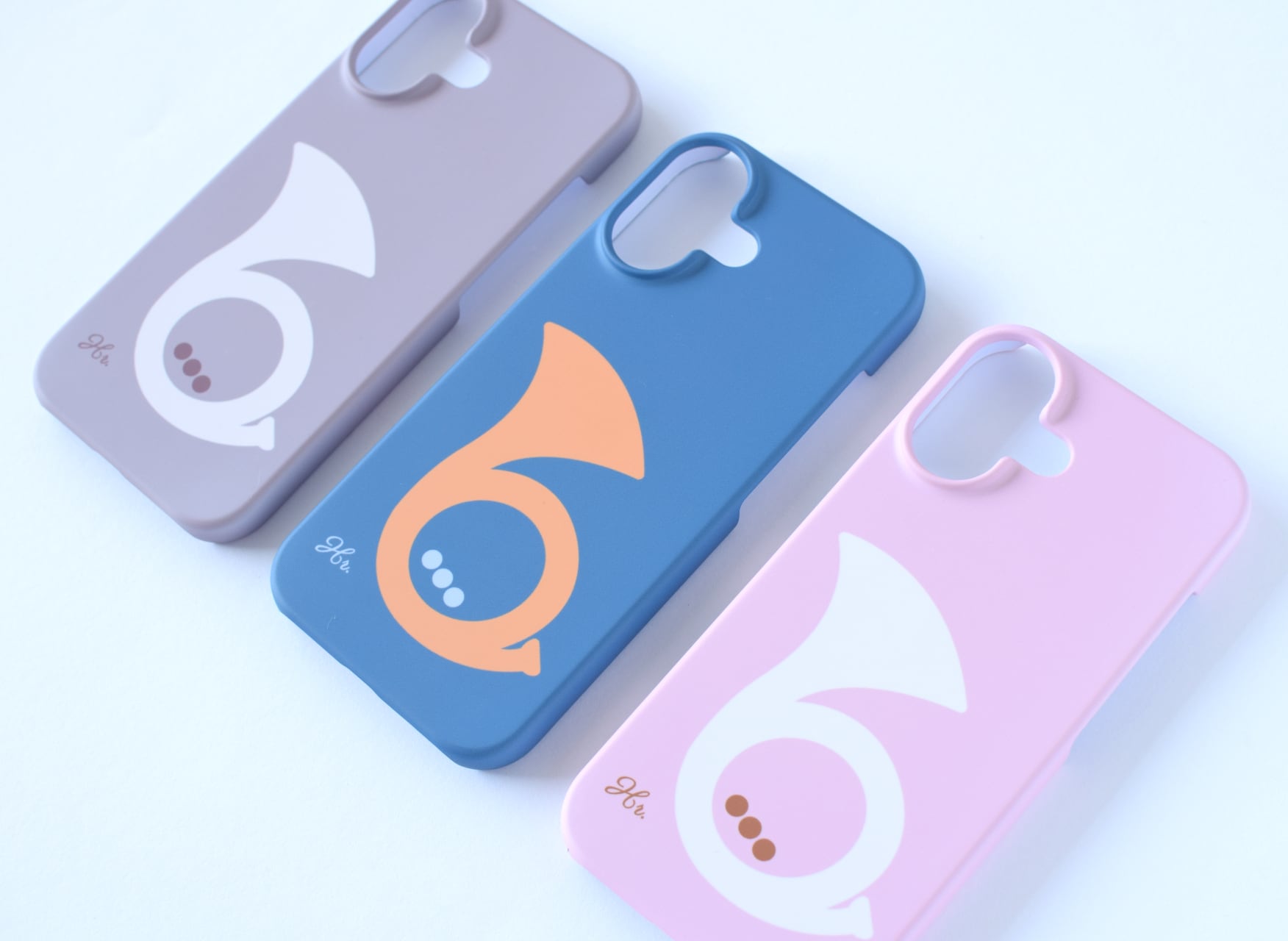 優しい色合いのカラーに可愛らしいホルンデザインのスマホケース。